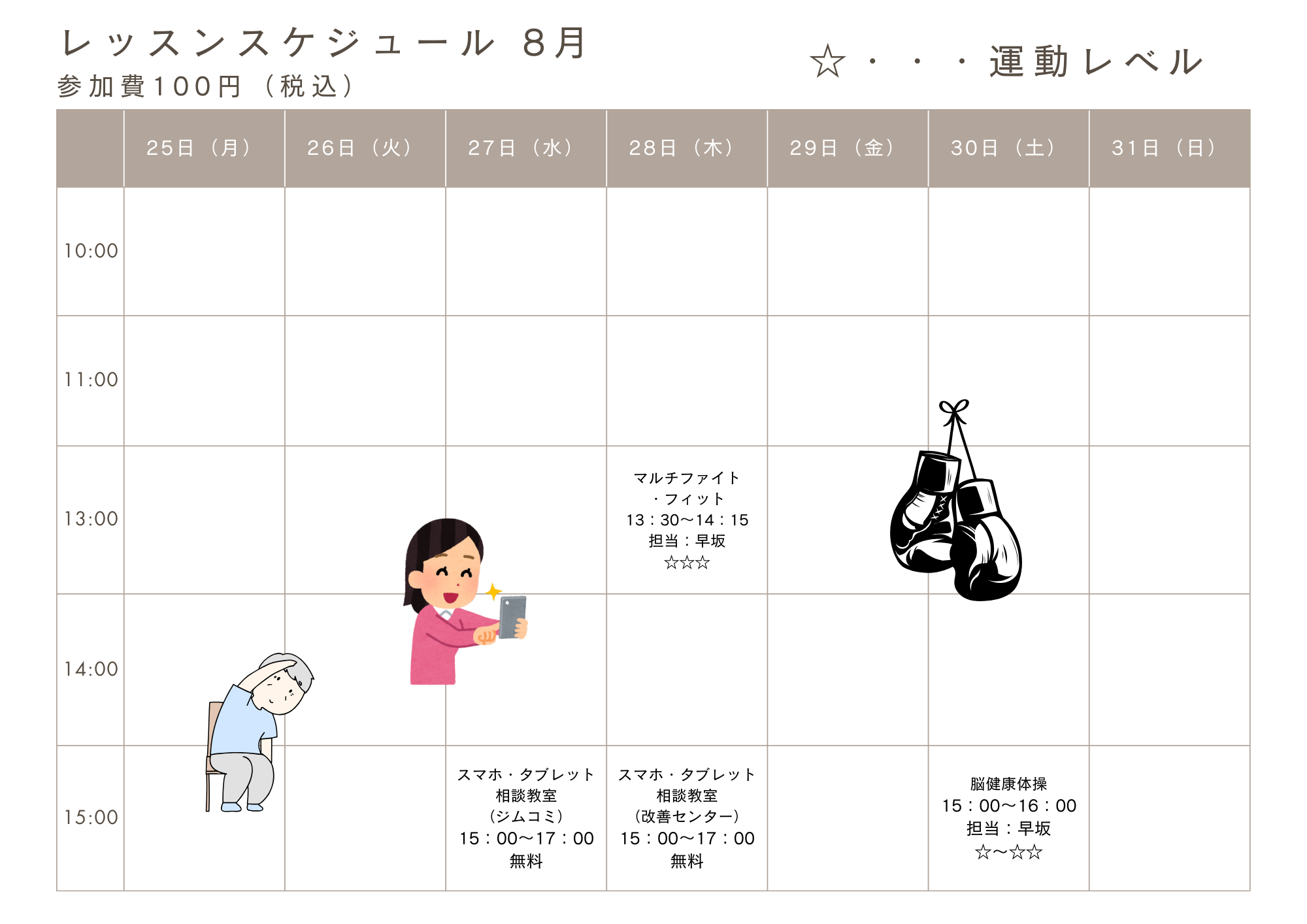 8月25日(月)~8月31日(日)までのレッスン表になります!