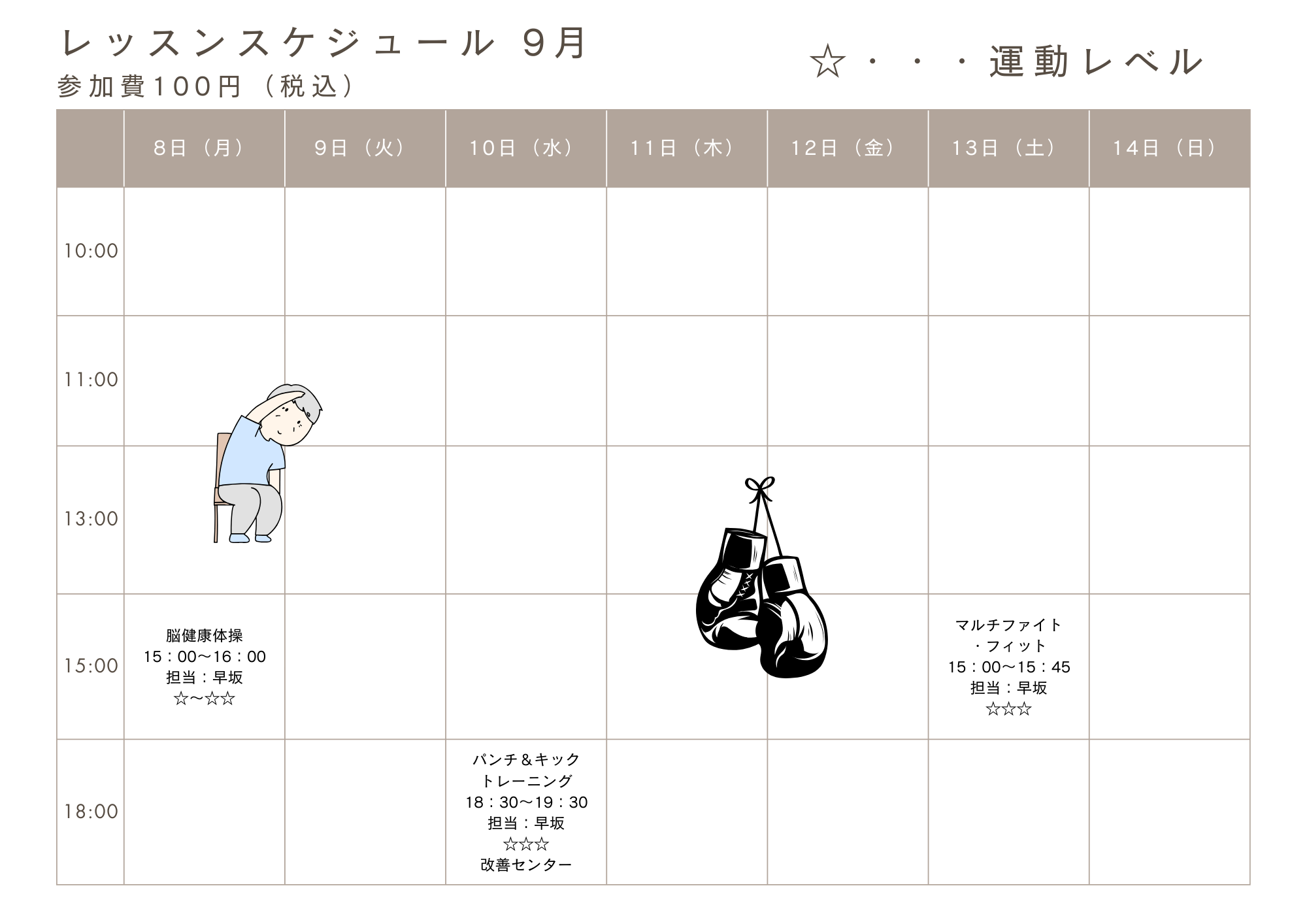9月8日(月)~9月14日(日)までのレッスン表になります!