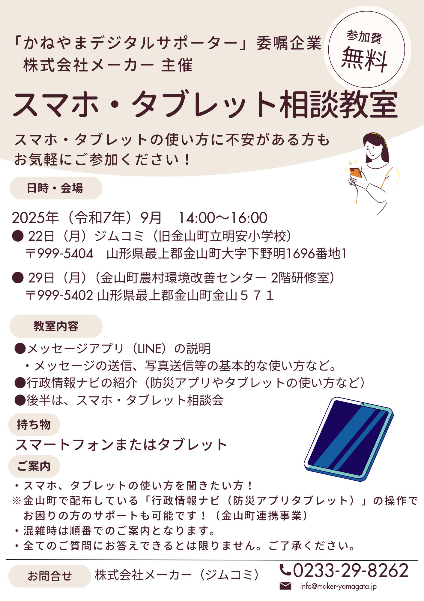 📱【9月スマホ・タブレット相談教室 開催のお知らせ】💡