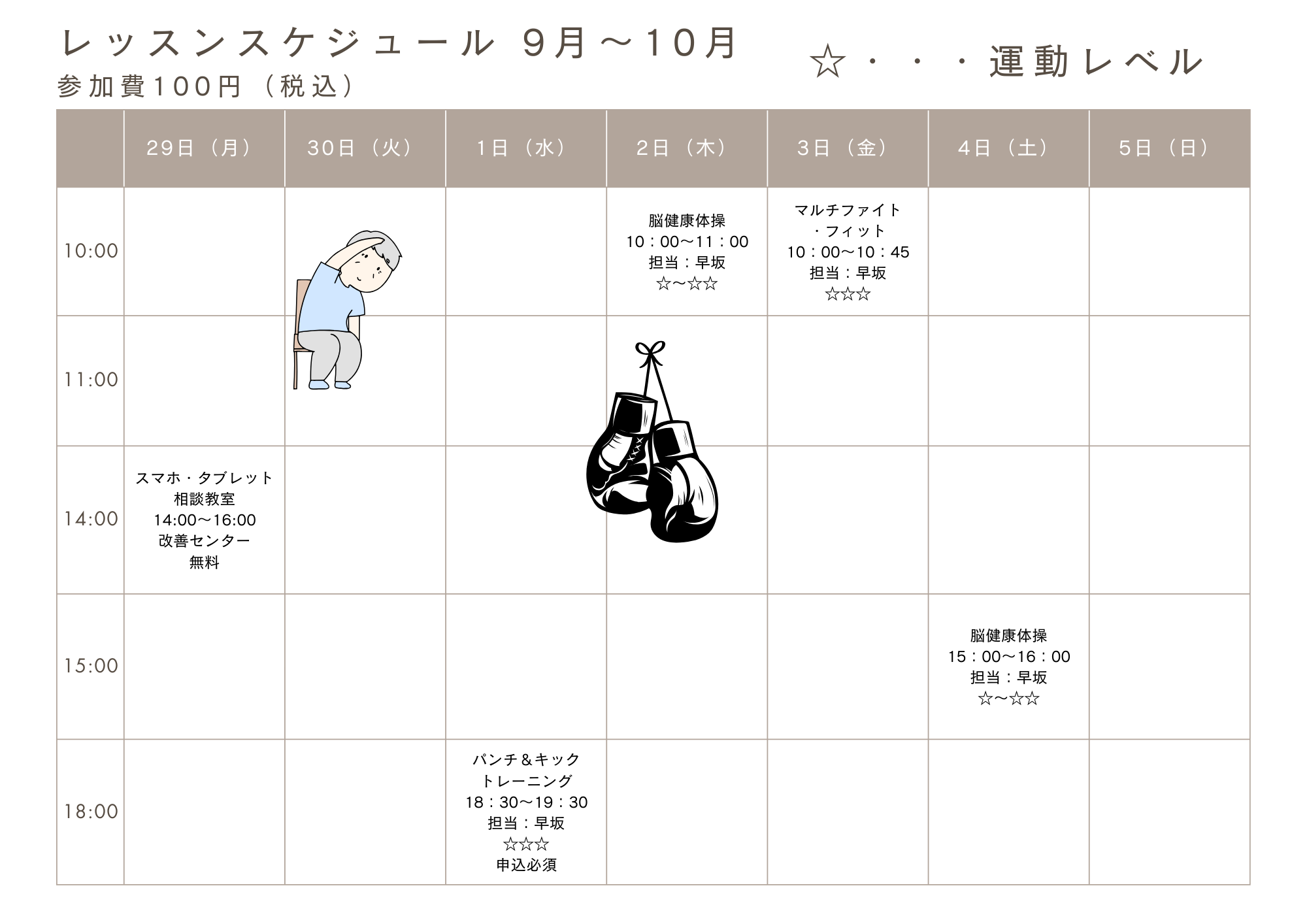 9月29日(月)~10月5日(日)までのレッスン表になります!