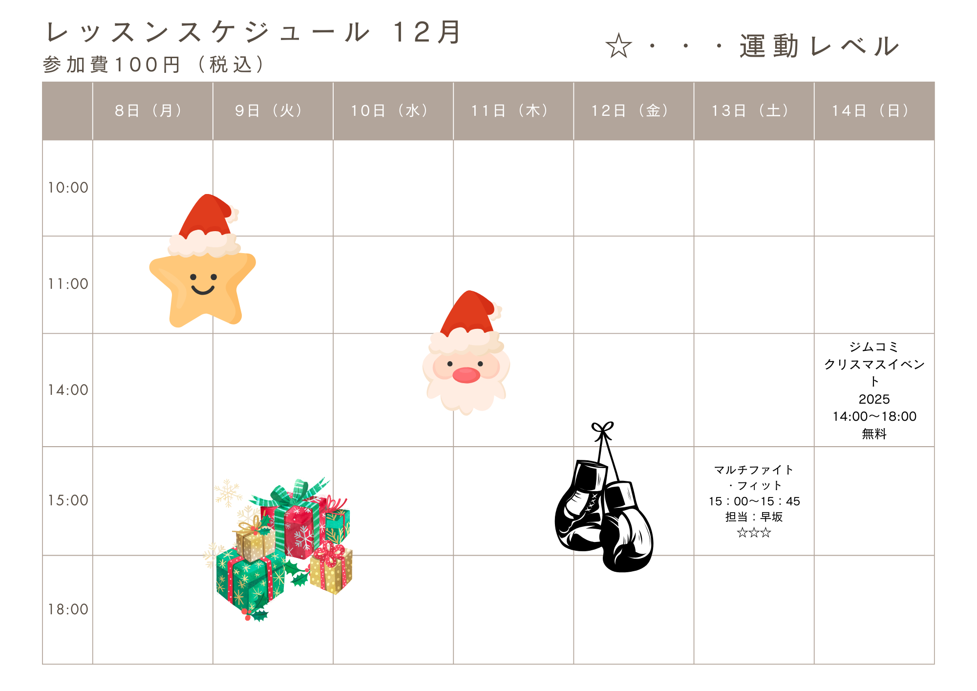 12月8日(月)~12月14日(日)までのレッスン表☆