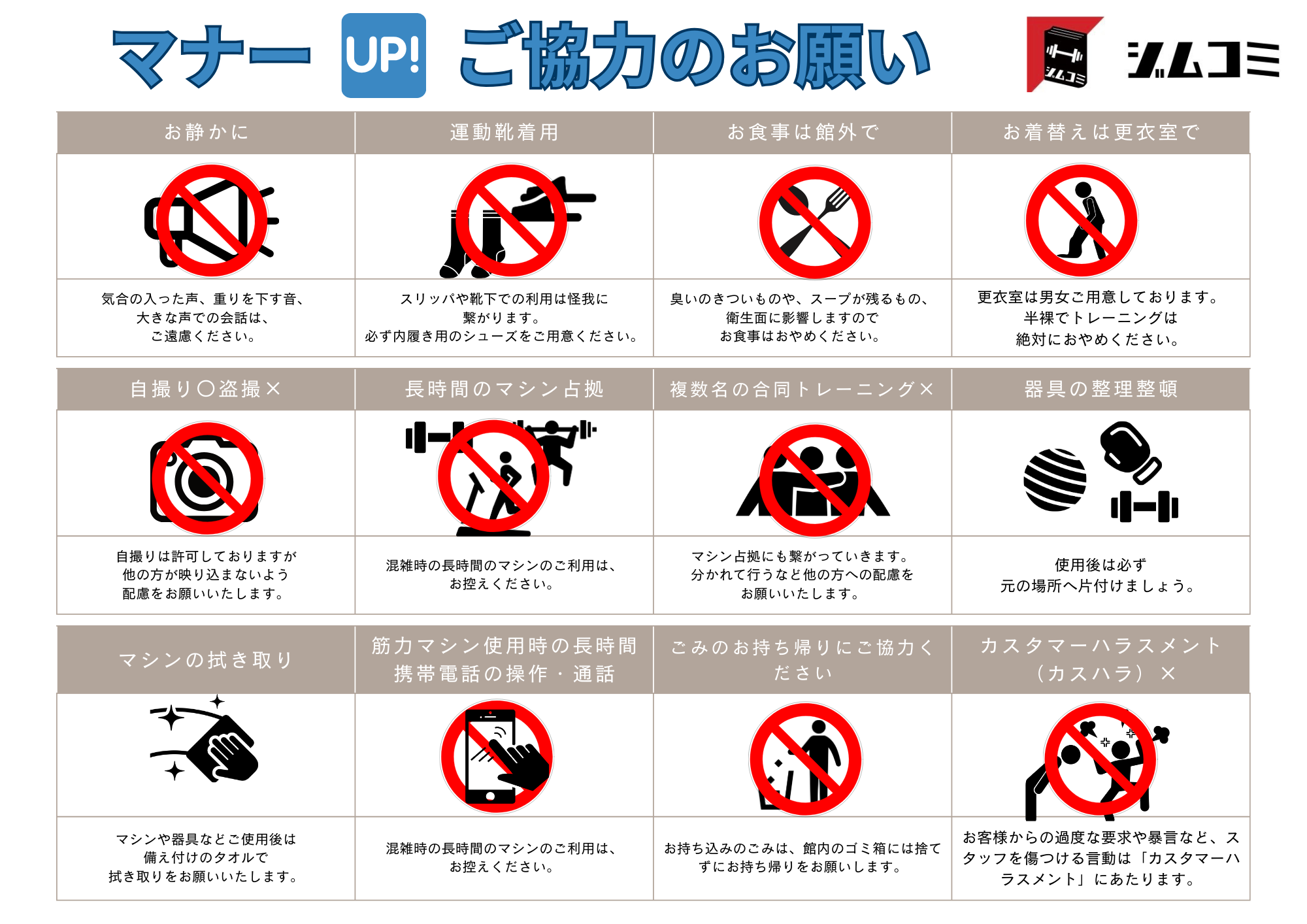 館内マナーの掲示をリニューアルいたしました。