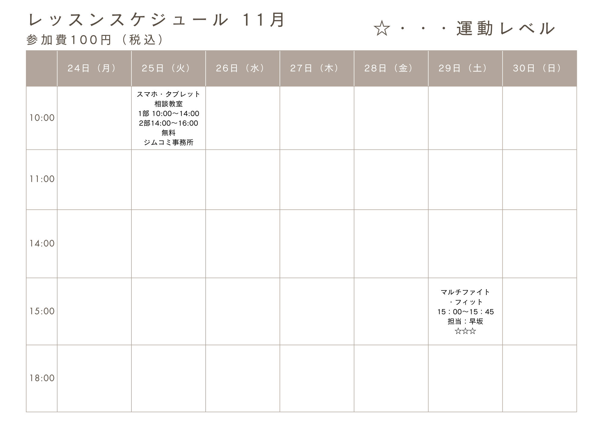11月24日(月)~11月30日(日)までのレッスン表☆