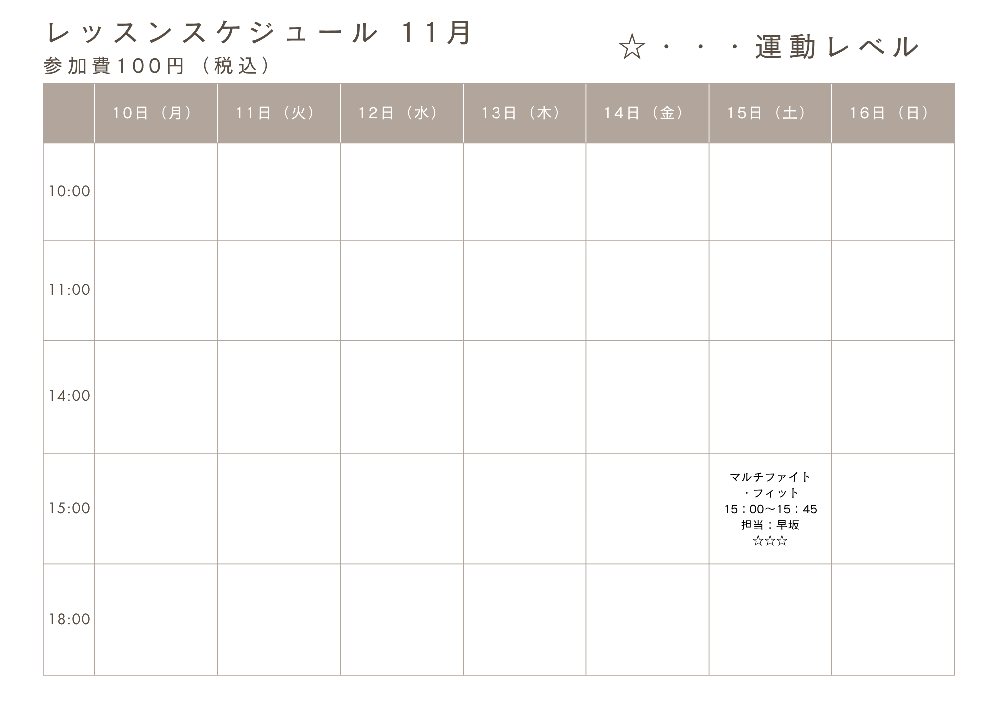 11月10日(月)~11月16日(日)までのレッスン表になります!